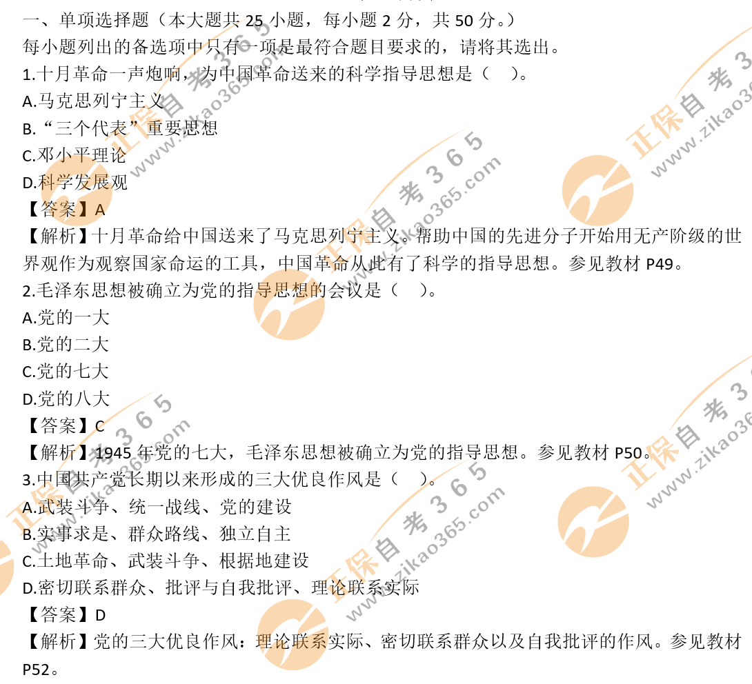 自考365提示您:以上內(nèi)容為2020年10月自考毛澤東思想和中國特色社會(huì)主義理論體系概論選擇題、簡答題、材料題答案及解析,關(guān)注本站,更多科目試題及答案解析將陸續(xù)發(fā)布。