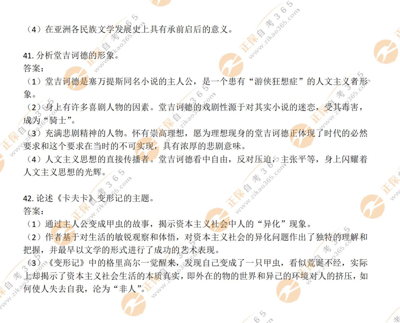 2021年10月自考外國文學史部分試題及答案(考友回憶版)