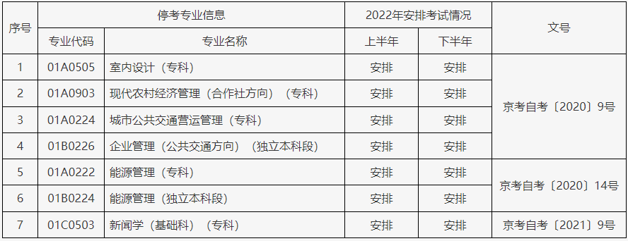 3.2022年有7個停考過渡專業(yè)不再接收新生,仍安排考試。具體情況見下表: