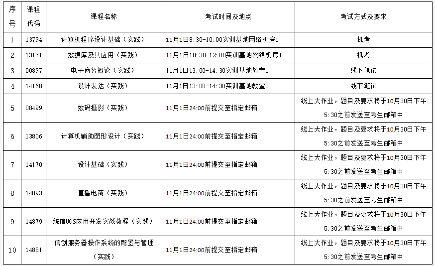 【轉(zhuǎn)發(fā)】北京科技職業(yè)學(xué)院2025年下半年自學(xué)考試實(shí)踐類課程考試安排