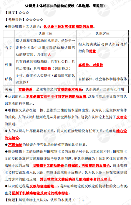 2023年10月自考《馬克思主義基本原理概論》核心考點(diǎn):認(rèn)識(shí)是主體對(duì)客體的能動(dòng)的反映