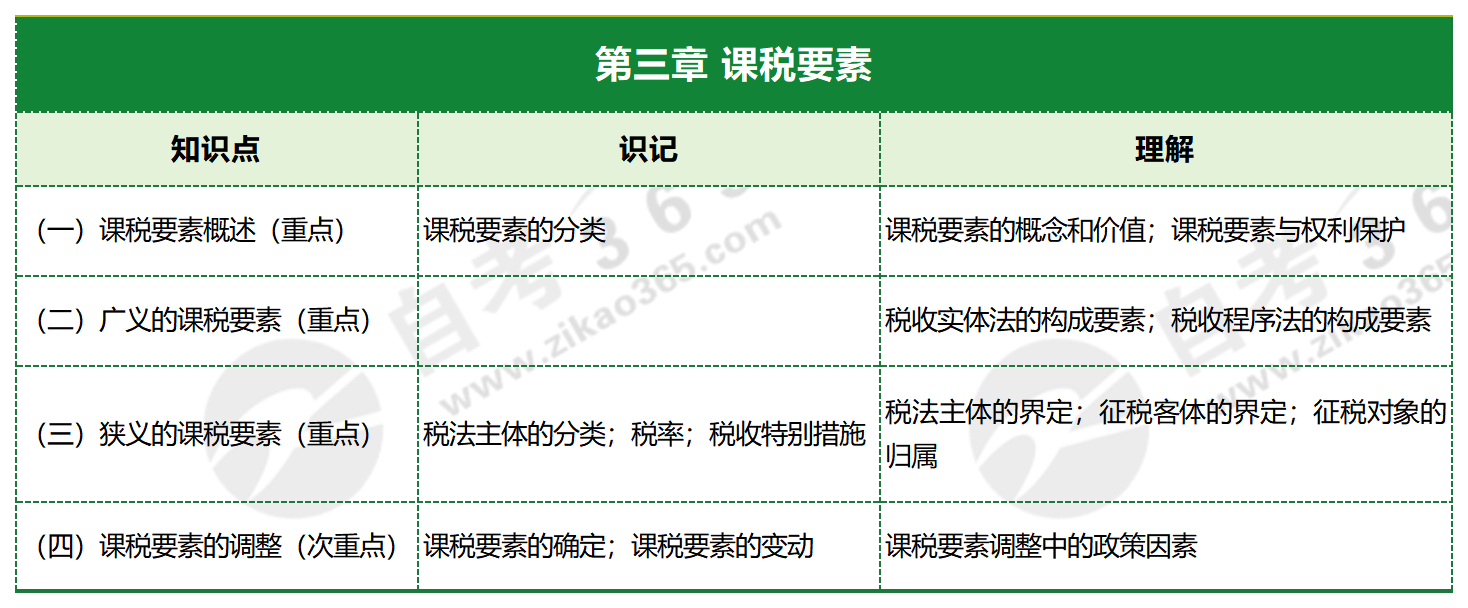 2024年自考稅法原理知識點框架:第三章 課稅要素