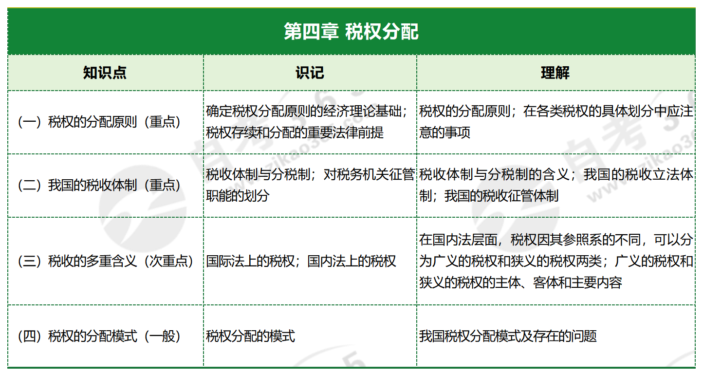 2024年自考稅法原理知識點框架:第四章 稅權分配
