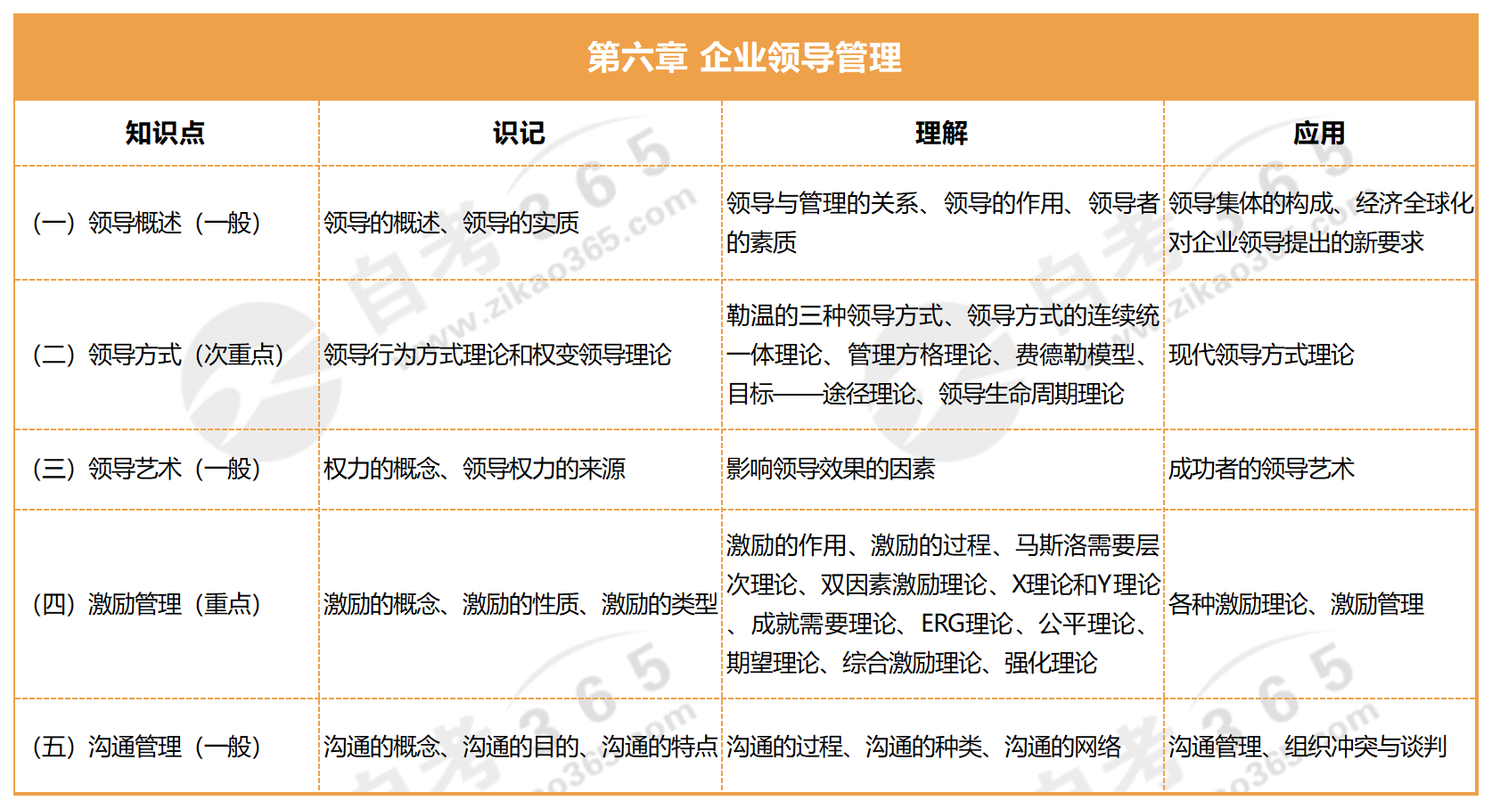 自考現代公司管理知識點框架:第六章 企業領導管理