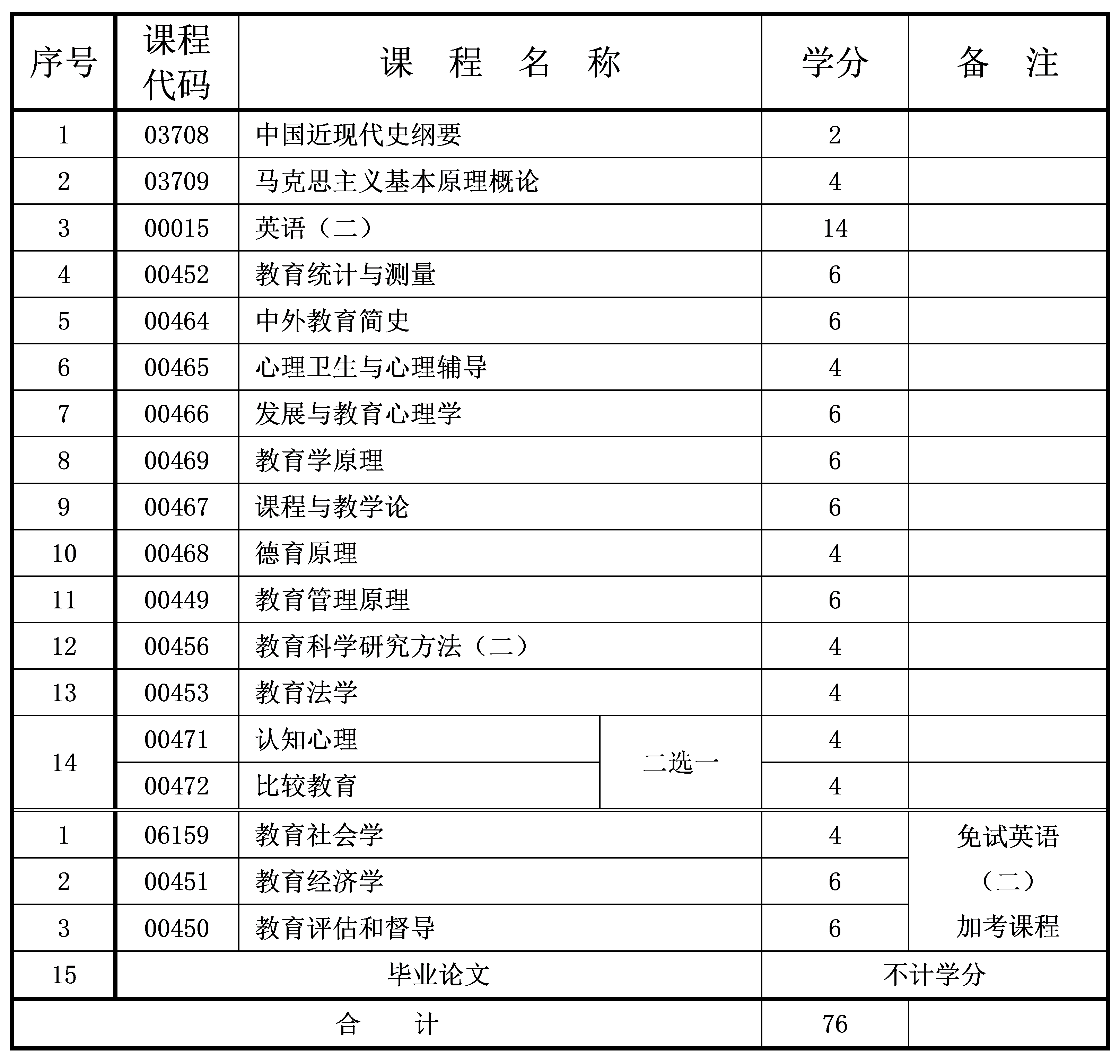 本專業培養具有堅定正確的政治方向、高尚的道德品質,具備良好的科學與人文素養,具有國際視野,系統掌握教育科學和本專業必需的基礎知識、基本理論、基本技能和方法,具有較強的創新創業精神和教育創業實踐能力和管理能力,能夠在各級各類教育及管理機構勝任教育、教學、管理與研究工作的高級專門人才。