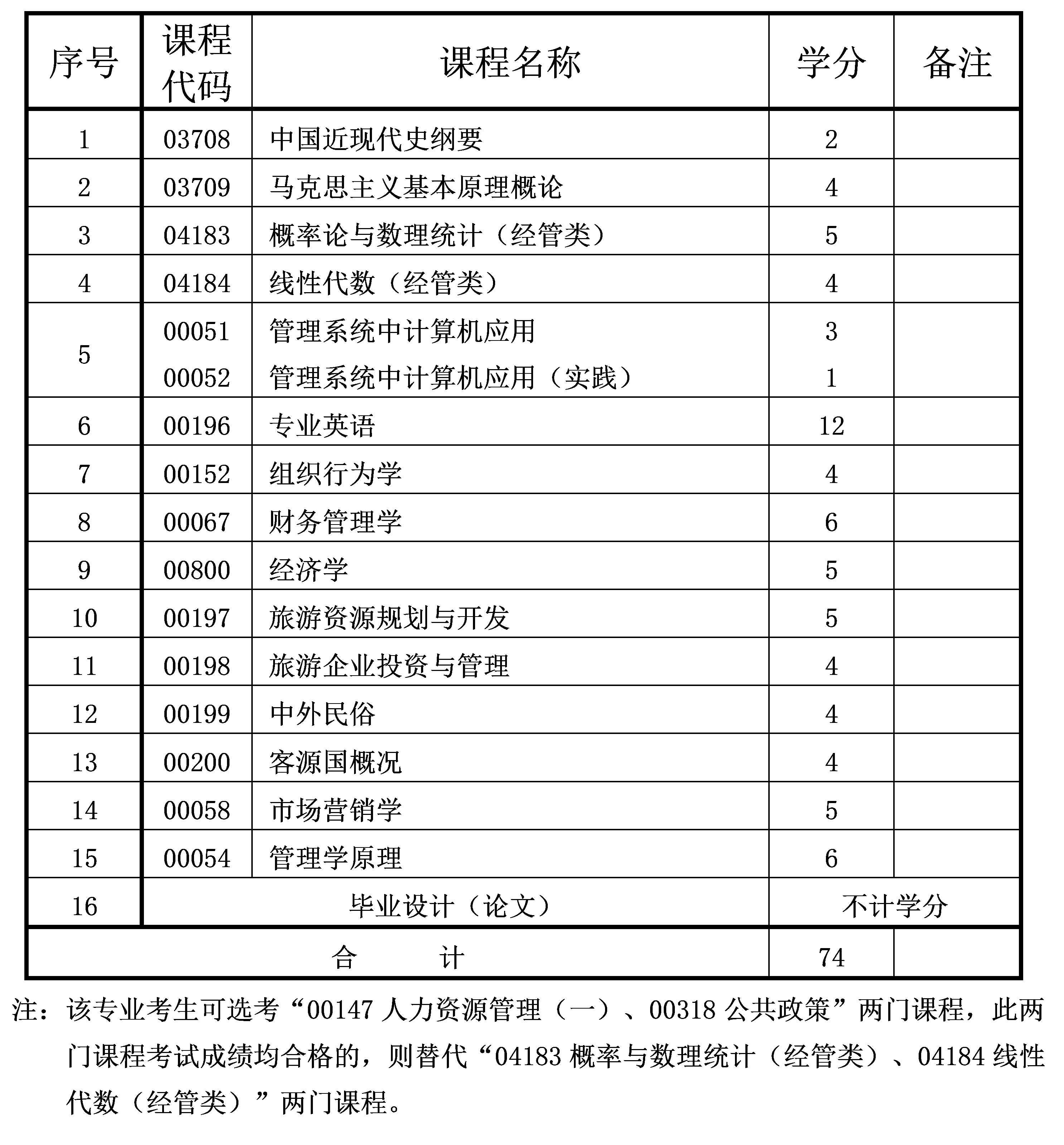 2023年4月重慶自考本科旅游管理專業(yè)計(jì)劃