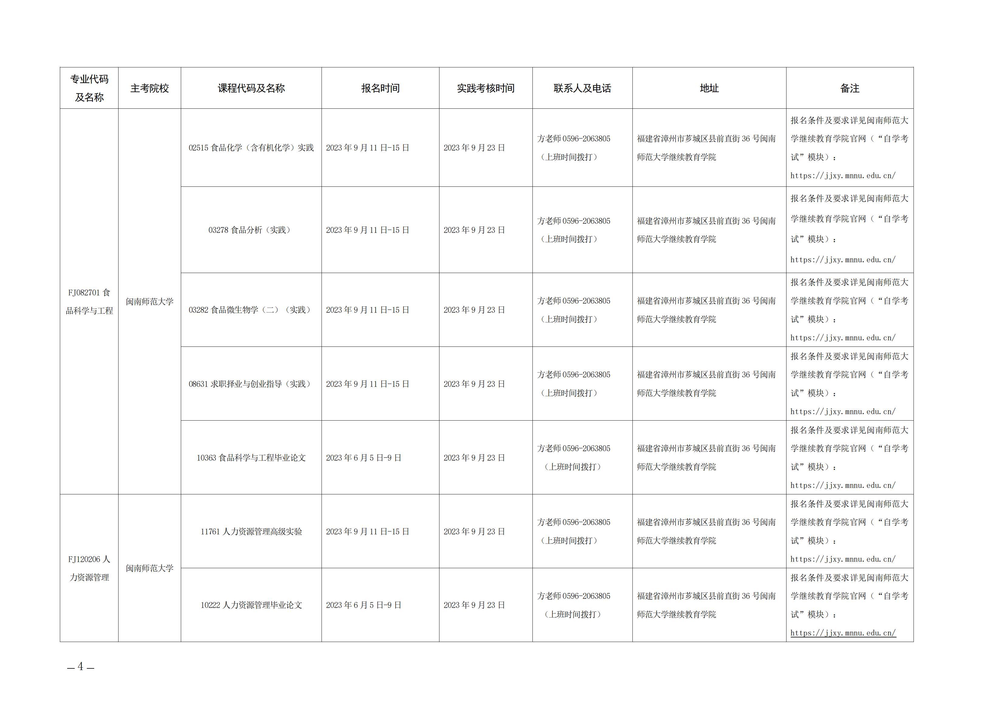 2023年下半年福建自考面向社會開考實(shí)踐性考核課程安排表