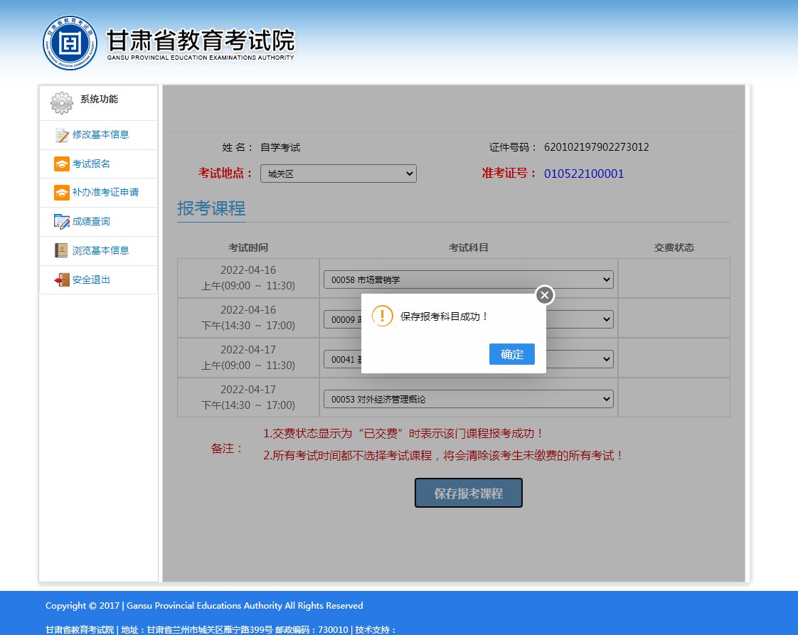 按照考試時間,下拉框顯示本次考試所有科目,選擇完成后,點擊“保存報考課程”。