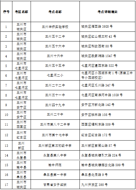 附件:2025年上半年甘肅省高等教育自學考試考點地址統計表