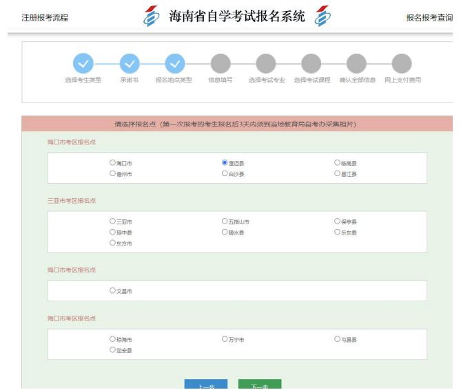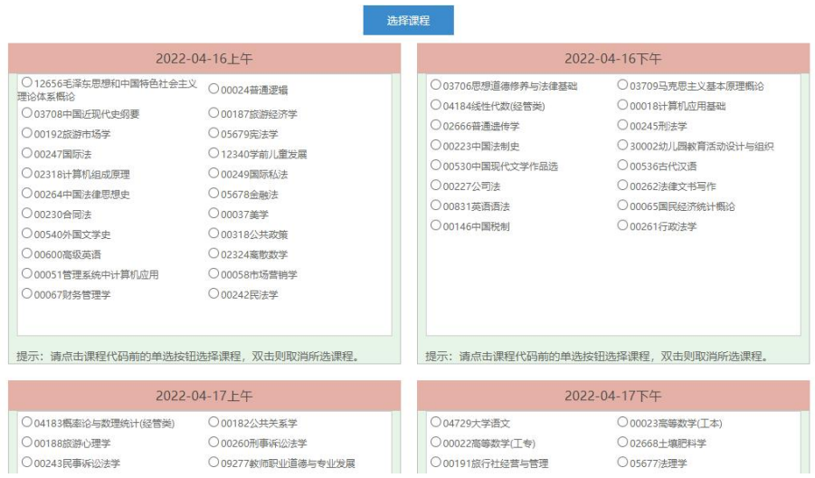 6、選擇專業后,顯示【選擇課程】顯示的是本專業下的可報考的課程,點擊【全部課程】按鈕后切換顯示所有可報考的課程,選擇報考課程后進行下一步