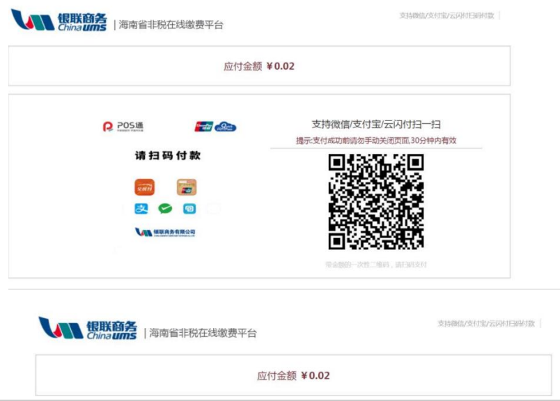 選擇微信/支付寶/云閃付掃碼進行支付,成功后點擊返回商家或等待10 秒進入網上報名登記表打印頁面,點擊打印