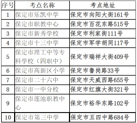 保定市2023年10月份自學考試將于10月28日至29日舉行。我市共設10個考點,分別設在保定市樂凱中學、保定市蓮池職教中心、保定市第十三中學、保定市一中分校、保定市第二十六中學、保定市新秀學校、保定市理工中等專科學校(四職中)、保定市高新區小學、保定市職教中心、保定市第三中學。請廣大考生提前熟悉考點位置,安排行程,防止因天氣等原因耽誤考試。