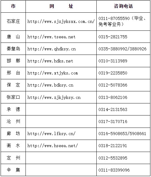 2024年下半年河北省高等教育自學考試各市教育考試院聯系方式
