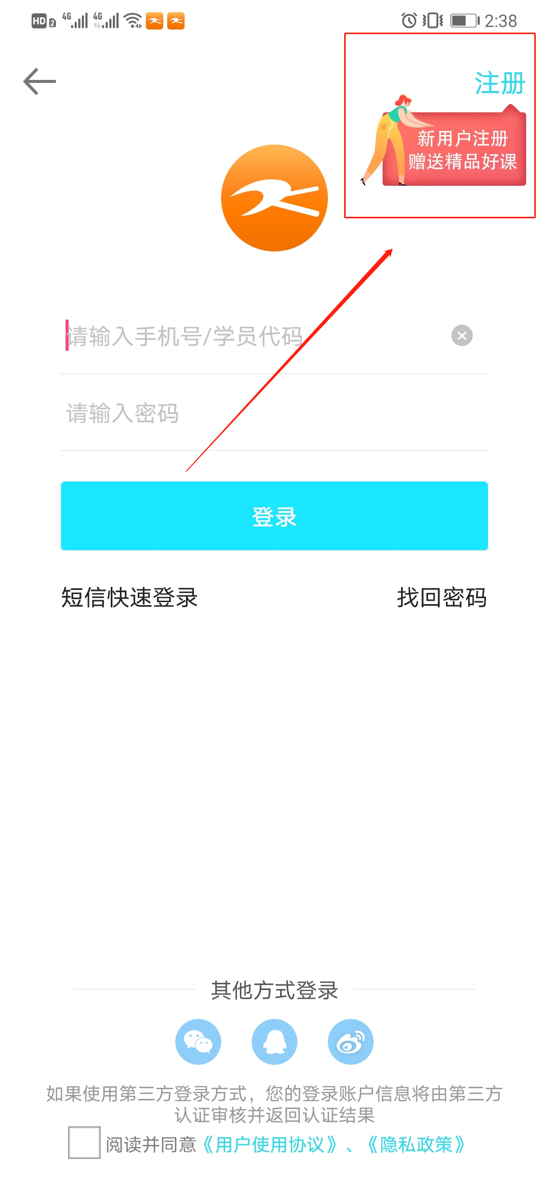 2在登錄界面右上角可以看到“注冊(cè)”入口。