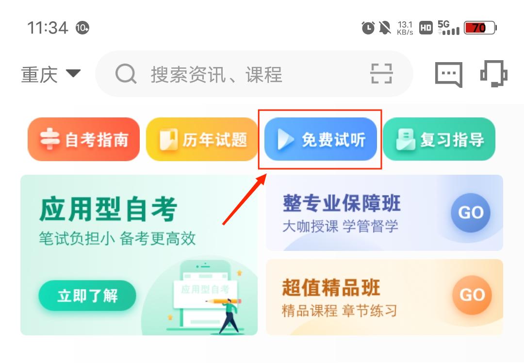 打開APP,點(diǎn)擊“免費(fèi)試聽”,即可試聽。