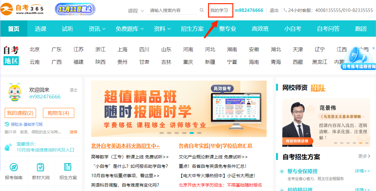 1在自考365網(wǎng)校網(wǎng)站首頁,點(diǎn)擊左上方的登錄/注冊按鈕,彈出登錄/注冊彈窗;