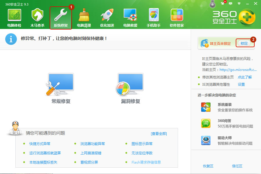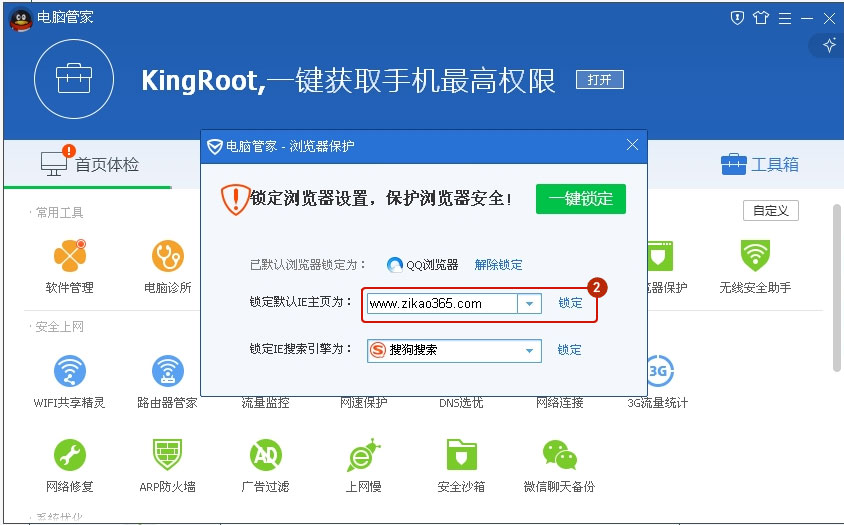 注:如輸入框為灰色無法輸入,請用360安全衛士內鎖定主頁