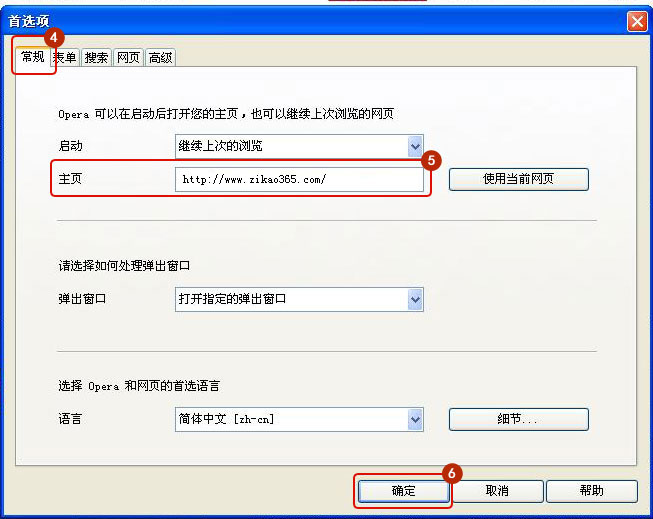 選擇"常規"選項,在"主頁"后的框中填入"m.ssgshop.cn" ,點擊確定。
