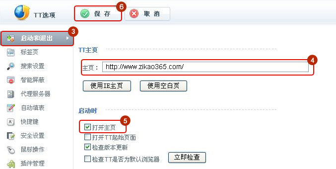 選擇啟動和退出,輸入m.ssgshop.cn為主頁,勾選啟動時打開主頁。最后別忘了點擊保存按鈕。