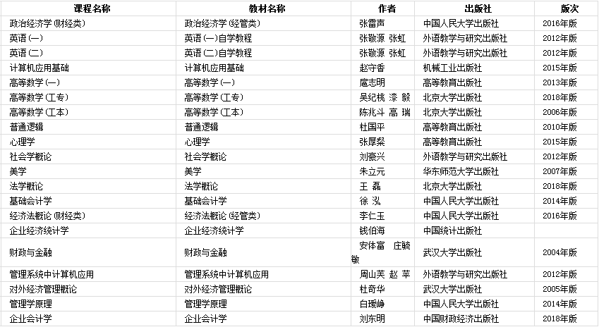 2019年河南省自學考試使用教材