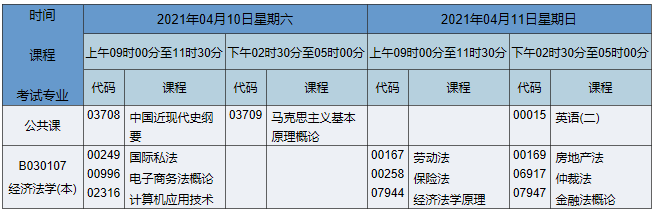 2021年4月湖南自考本科法學(xué)(原經(jīng)濟(jì)法學(xué))專(zhuān)業(yè)課程安排表