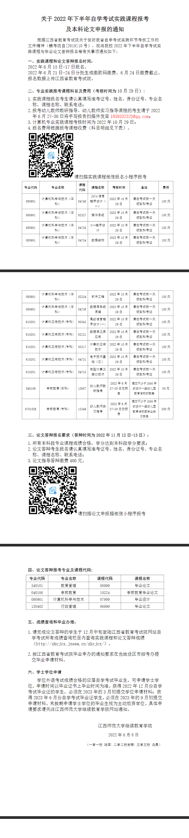 2022年下半年江西師范大學(xué)自考實(shí)踐報(bào)考及本科論文申報(bào)的通知