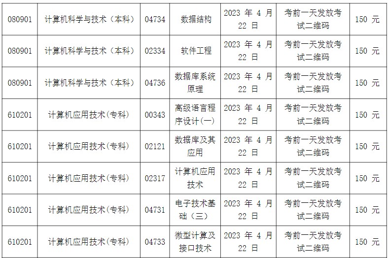 3、計(jì)算機(jī)專業(yè)實(shí)踐課程考核時間為2023年4月22日;