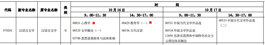 2021年10月吉林自考漢語言文學專科課程考試安排