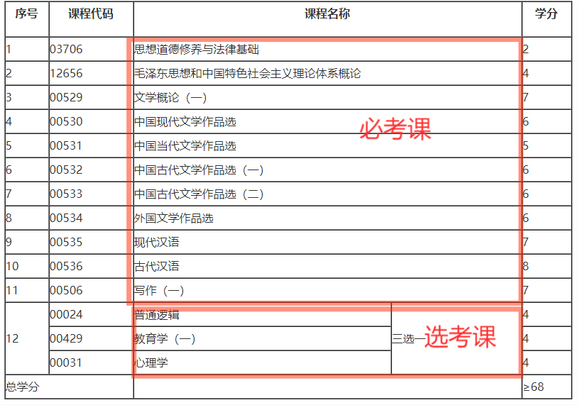 吉林自考漢語言文學專科需考過12門課程(如下圖所示),其中,包括11門必考課,1門選考課。(直通車→2021年10月吉林自考專業及主考院校一覽表)