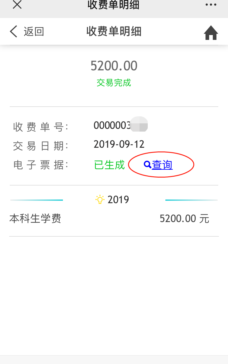 4.繳費(fèi)成功后在左上角的菜單里選擇“已繳費(fèi)查詢”,在“收費(fèi)單明細(xì)”里查看生成的電子票據(jù)。