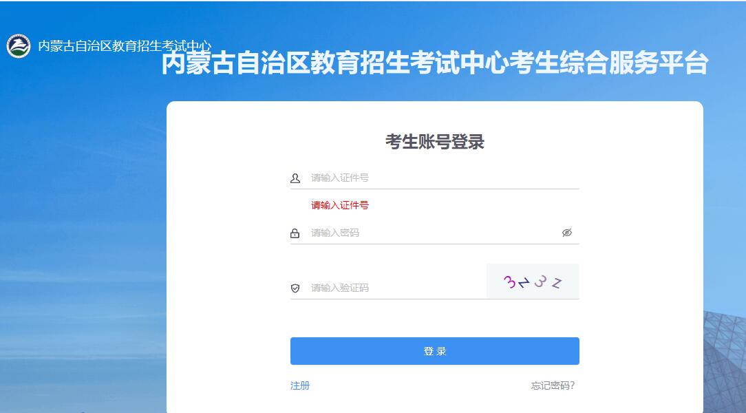3、進入內蒙古自治區教育招生考試中心考生綜合服務平臺后,使用身份證號、密碼及隨機驗證碼登錄,即可查詢本次10月份的考試成績。