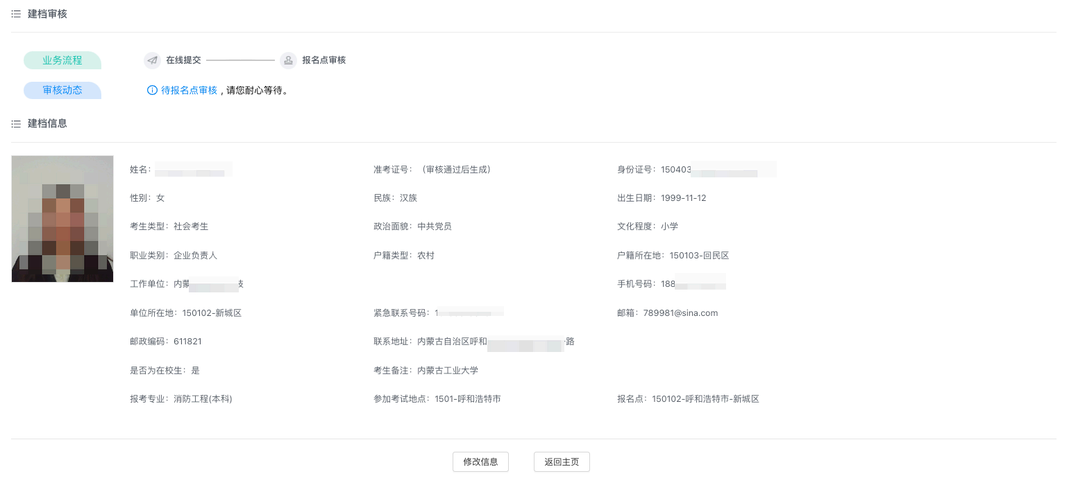 審核通過:審核通過即生成準考證號,完成考籍注冊。