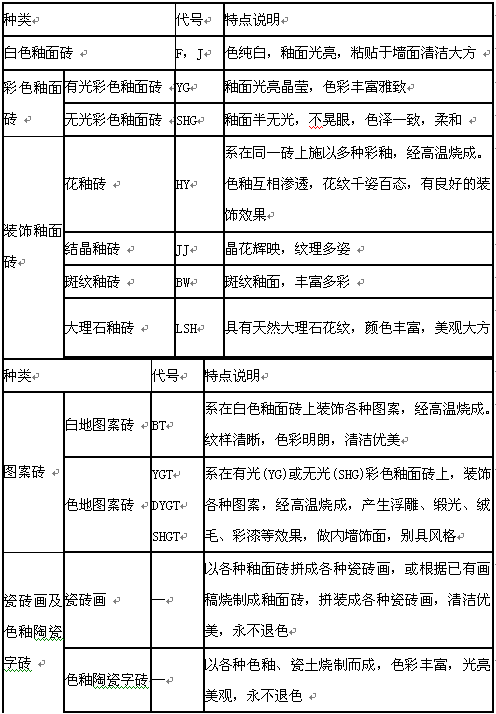 3.按部位分:室內墻面磚、室內地磚、室外墻面磚、室外地磚四大類。