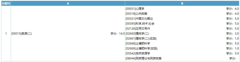 備注:00015英語(二)從英語頂替課組中任選開考的三門課程。