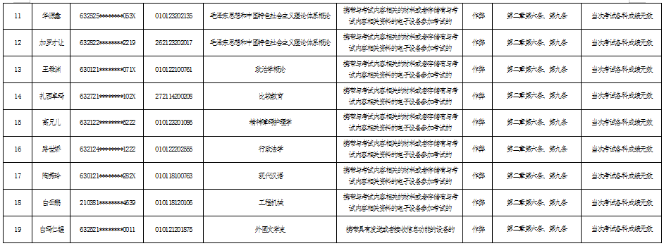 青海省關于2023年下半年高等教育自學考試違規考生處理決定的通報