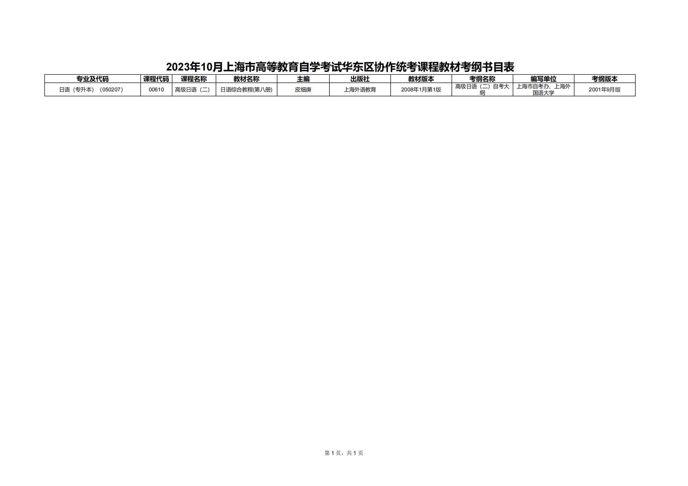 1.2023年10月上海市高等教育自學考試全國統考課程教材考綱書目表(點擊下載)