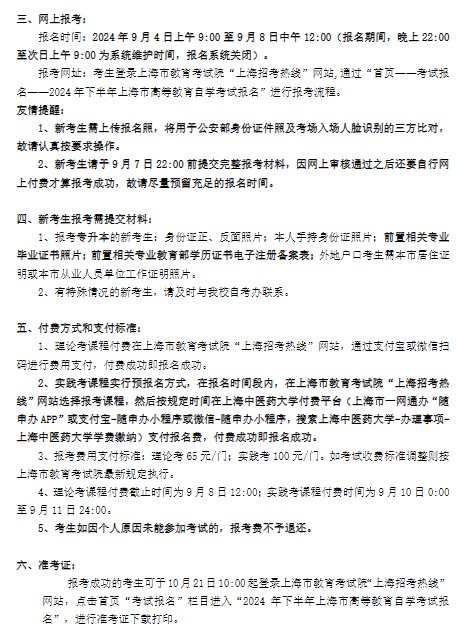 2024年10月上海中醫藥大學自考中藥學專業報考事項說明3