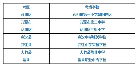 2024年下半年自學考試將于10月26日至27日舉行。本次考試,達州市共設置7個考區7個考點,具體如下: