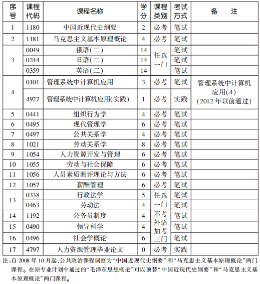- 2022年10月天津自考本科人力資源管理專業(yè)計(jì)劃
