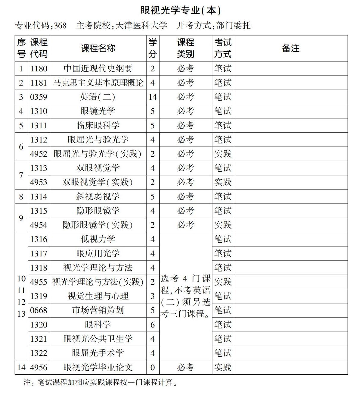 2023年10月天津自考本科眼視光學專業計劃