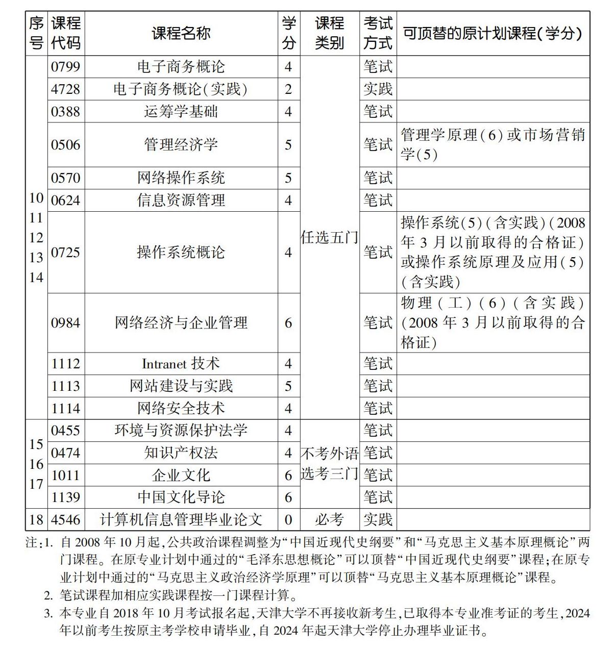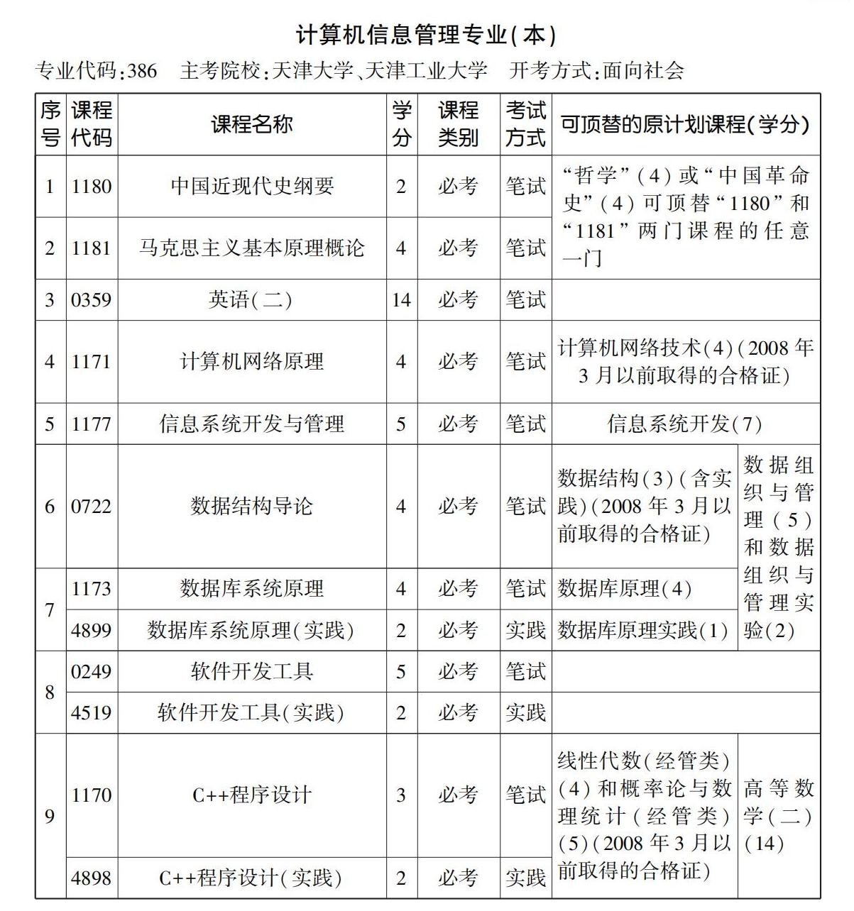 2023年10月天津自考本科計算機信息管理專業計劃