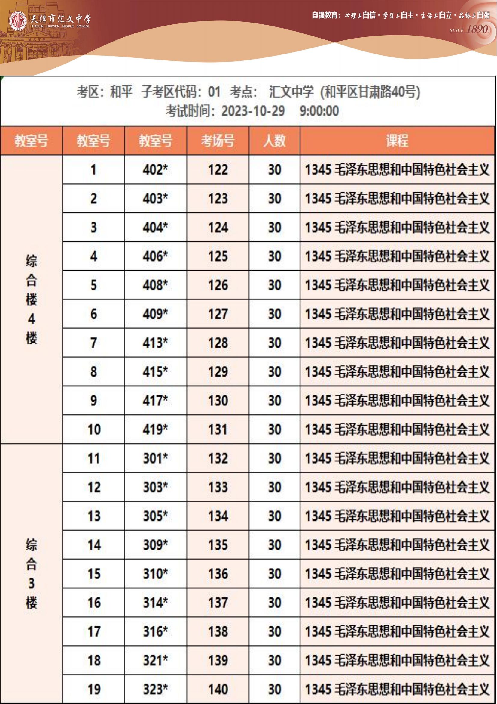 2023年下半年天津市和平區(qū)匯文中學(xué)自考考點(diǎn)考場(chǎng)示意圖