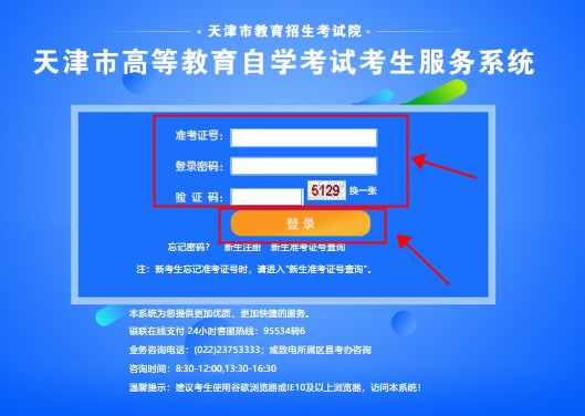 4、輸入準考證號、登錄密碼及驗證碼,登錄考生服務系統;