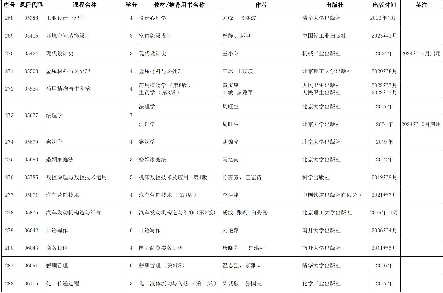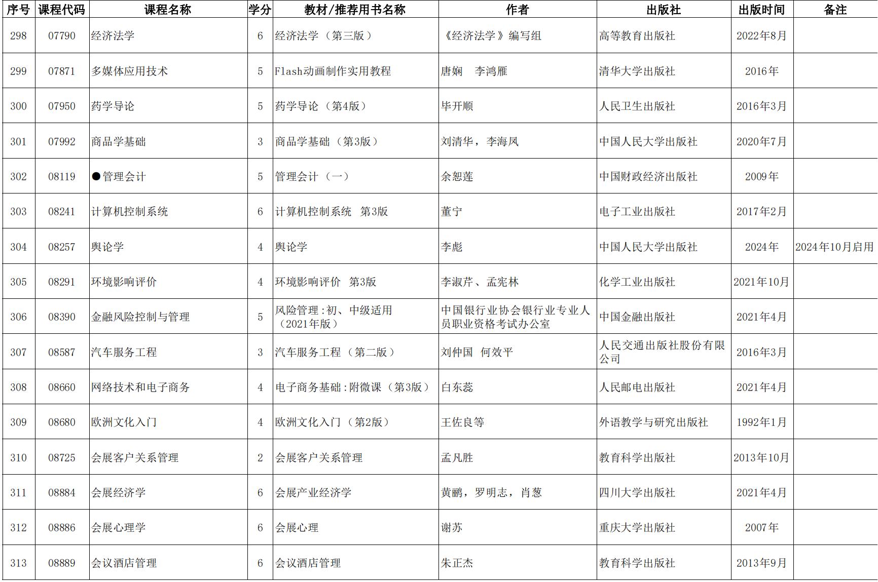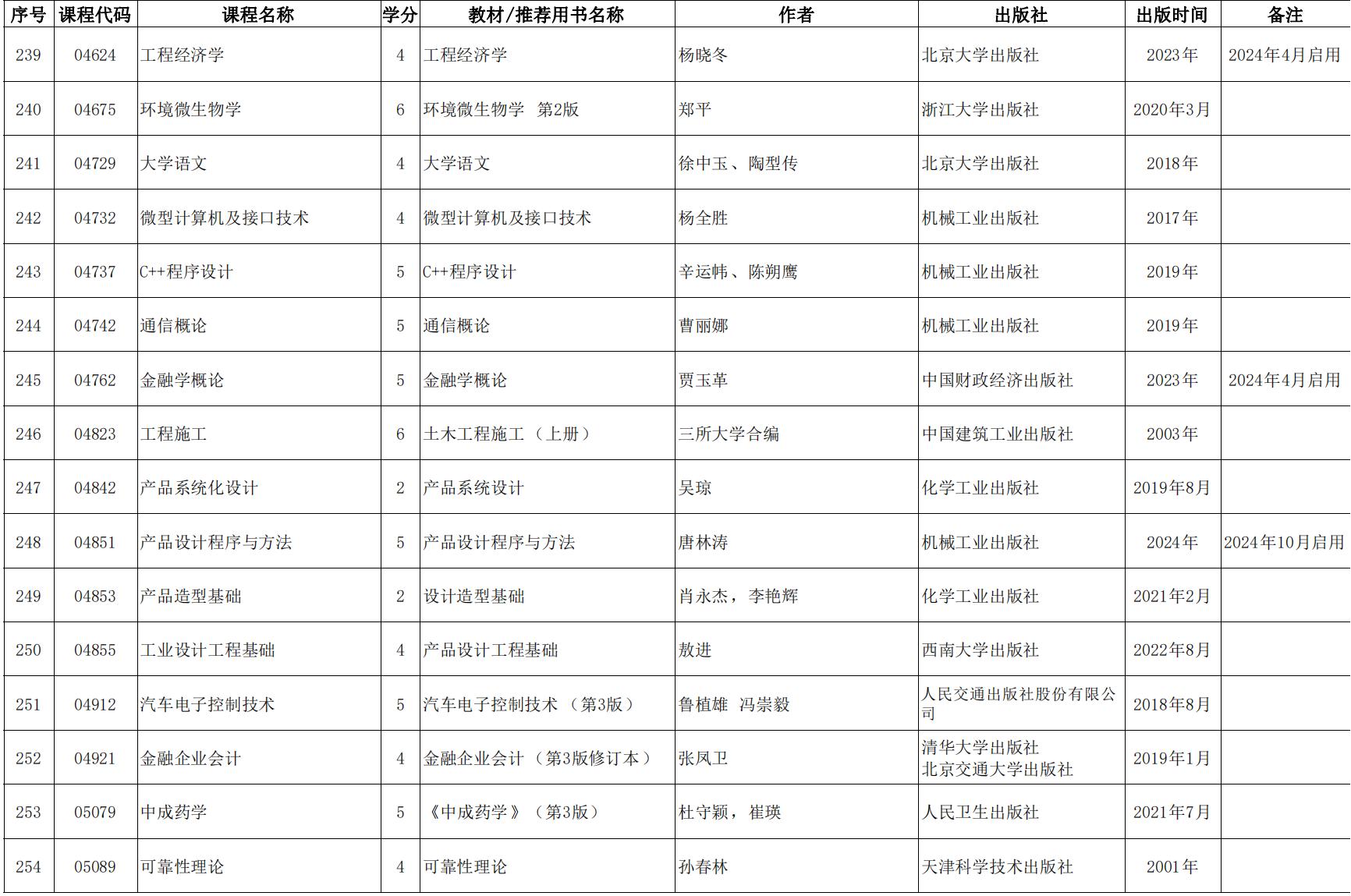 2024年天津市高等教育自學考課程使用教材表發布(點擊下載),詳情如下: