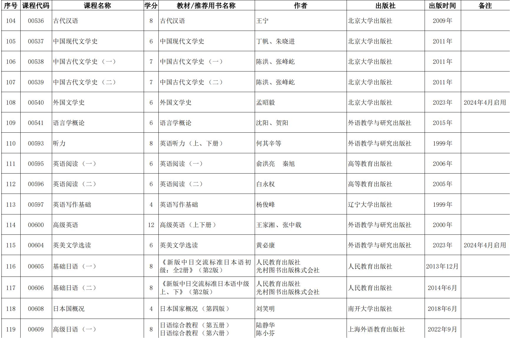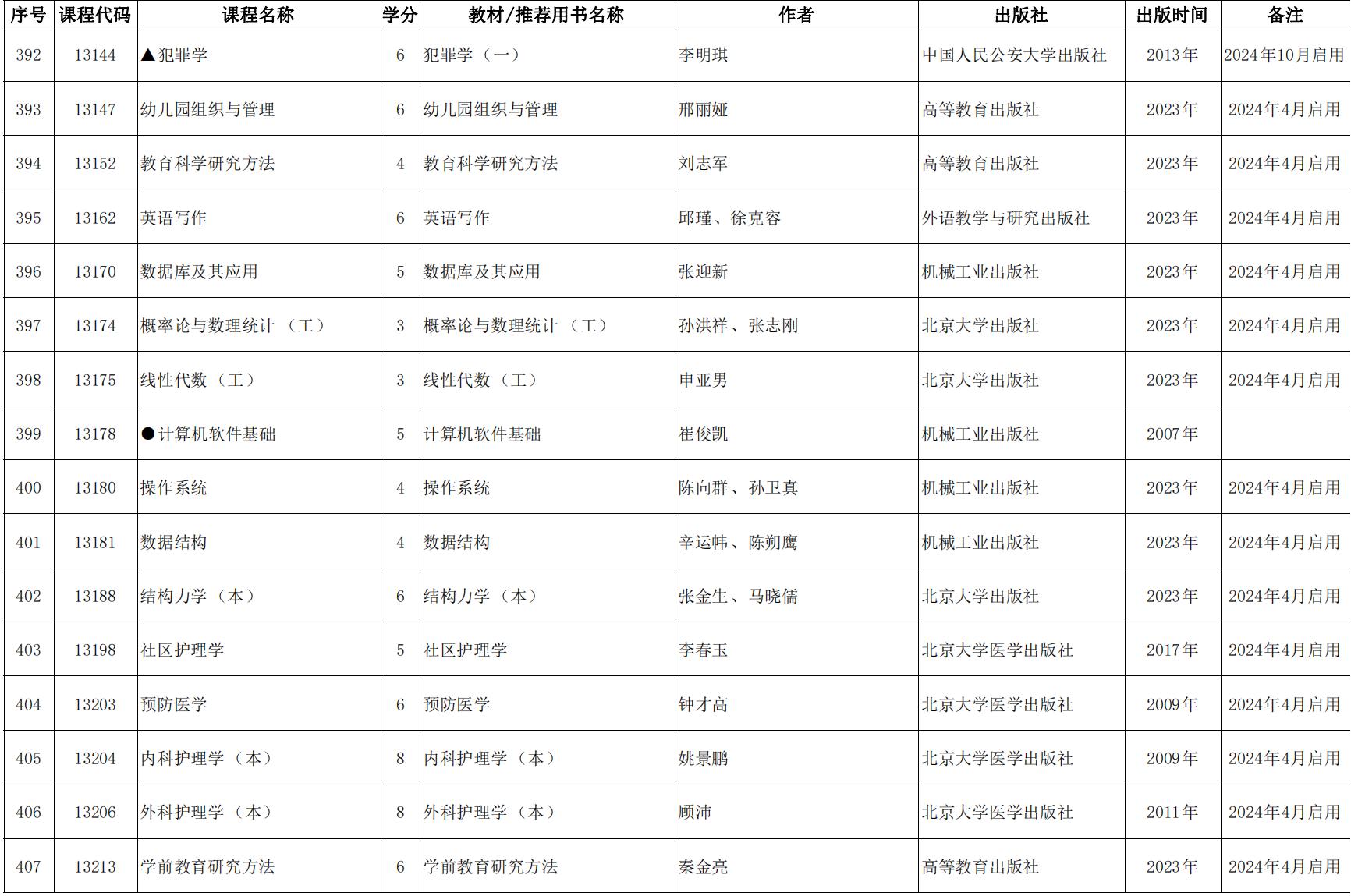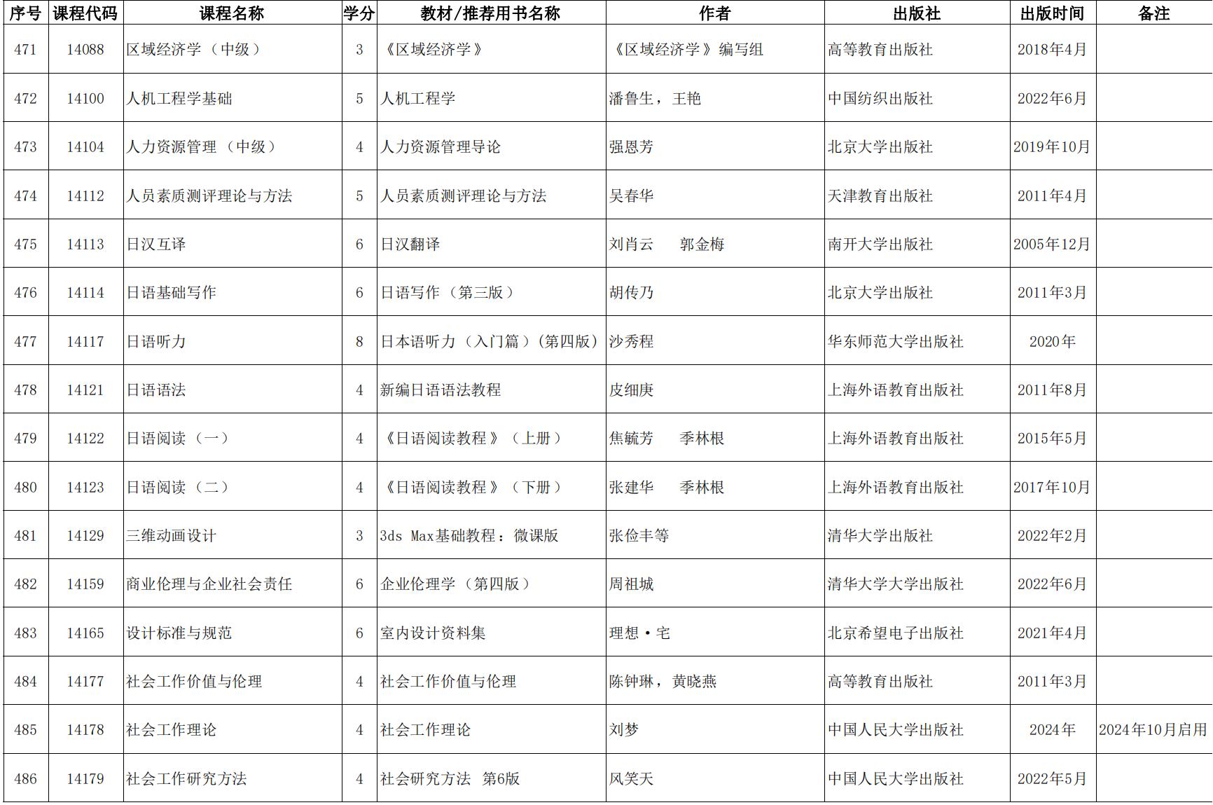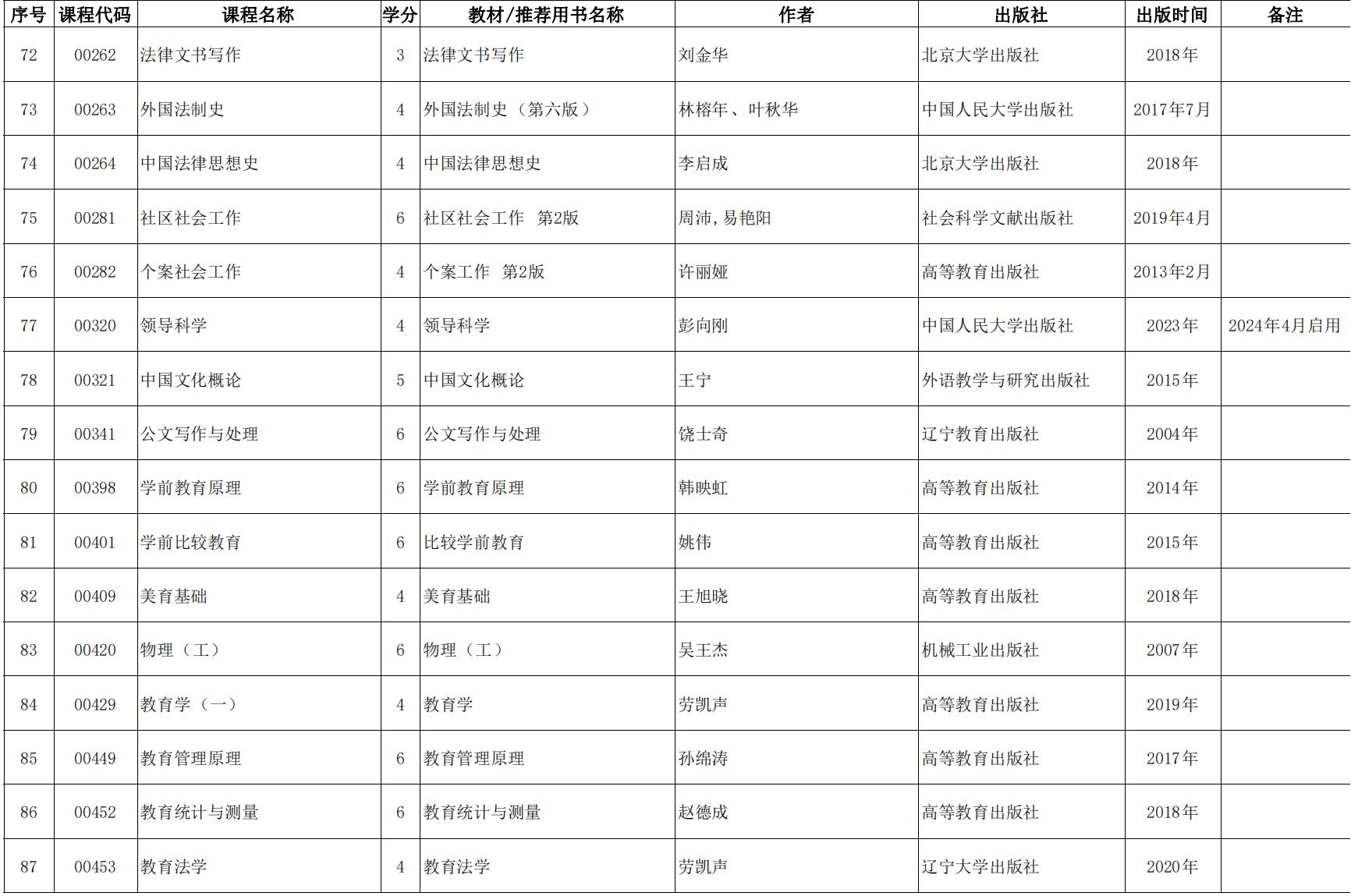 2024年天津市高等教育自學考課程使用教材表發布(點擊下載),詳情如下: