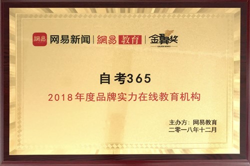 自考365憑借雄厚的師資力量、精致的課件制作、嚴謹的教學作風、靈活多樣的教學方式,獲得“十佳網絡教育機構”榮譽稱號。