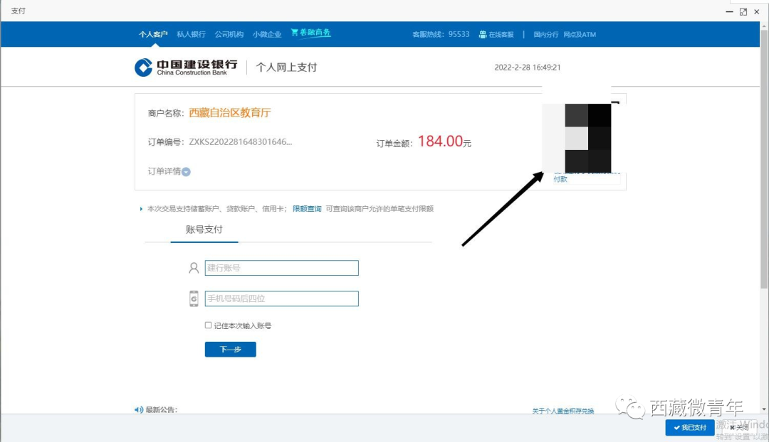 10.在繳費頁面用微信掃一掃箭頭所指的二維碼完成繳費工作。
