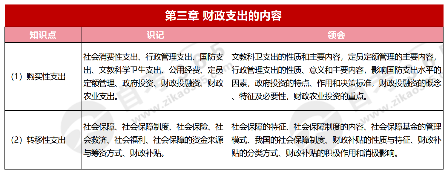 2024年自考財政學知識點框架:第三章-財政支出的內容