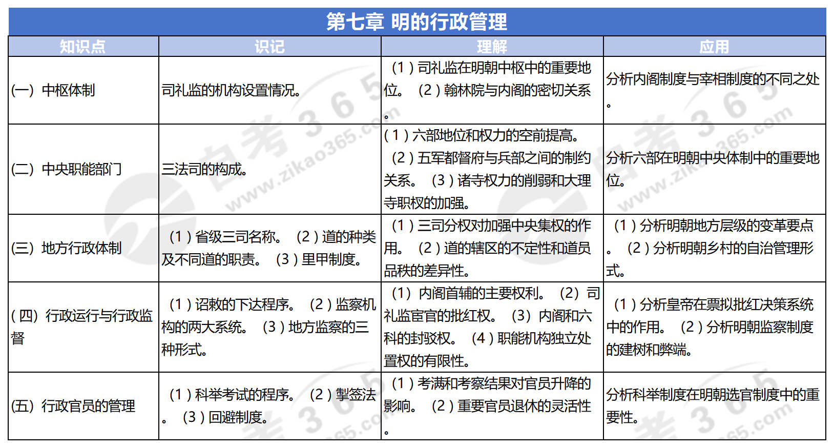 自考中國行政史這一科,教材各章節考點都要好好掌握。中國行政史教材第七章-明的行政管理,考生應著重學習以下知識點,并按理解應用要求,把握好學習程度,這樣就能更有重點地學習,更省心省力。