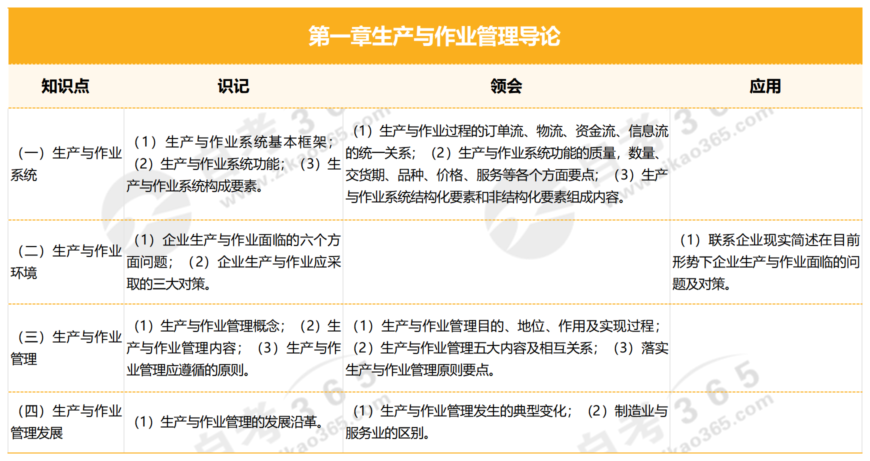 - 自考生產(chǎn)與作業(yè)管理(2007版)各章節(jié)知識(shí)點(diǎn)與學(xué)習(xí)要求